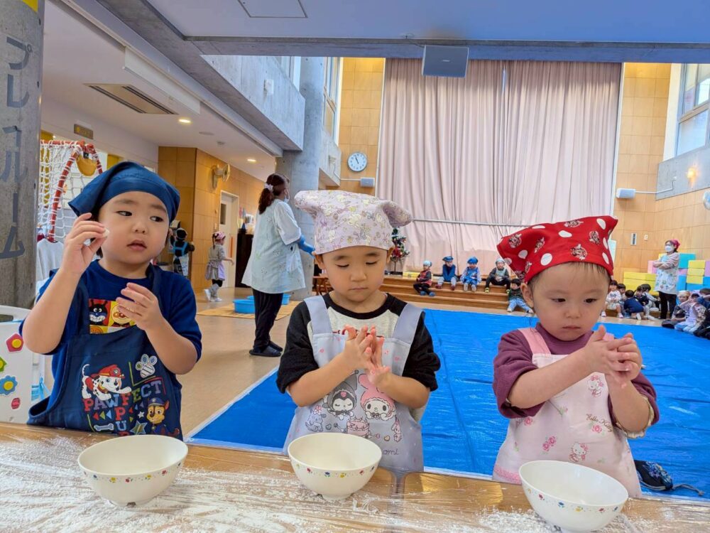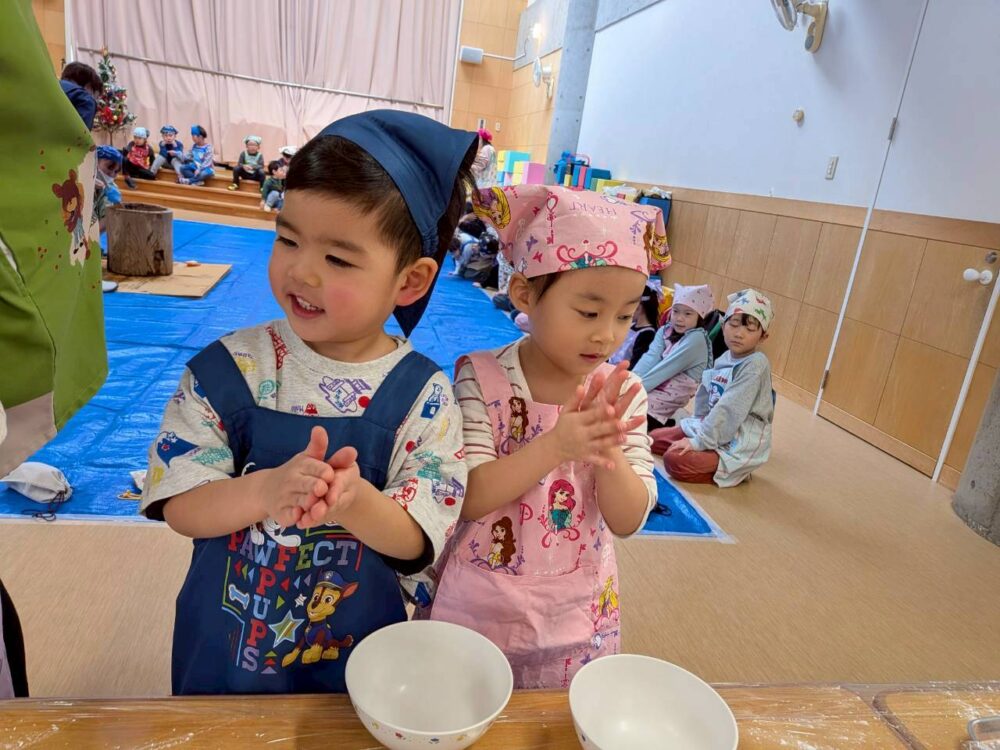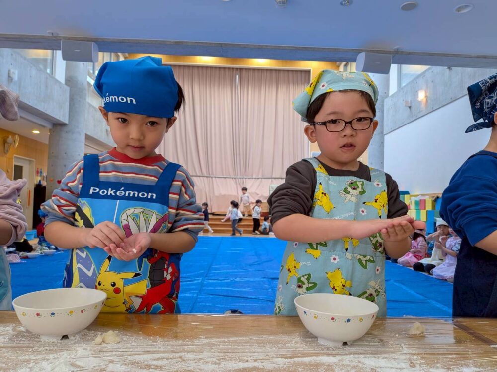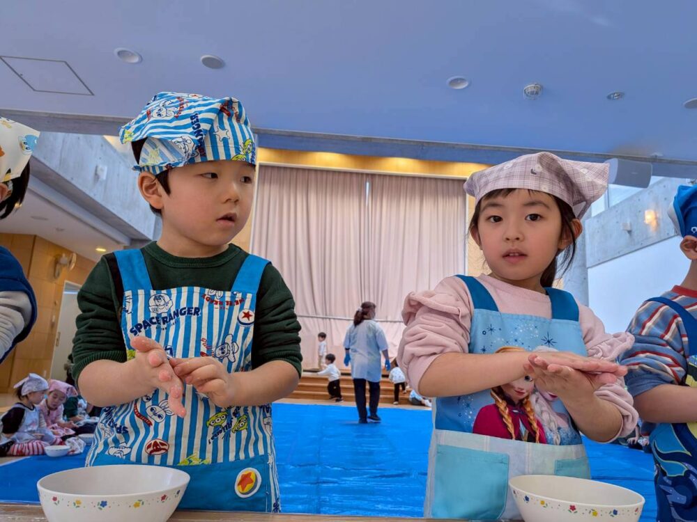 大きいお友だちはエプロンをつけて準備もバッチリ🌟