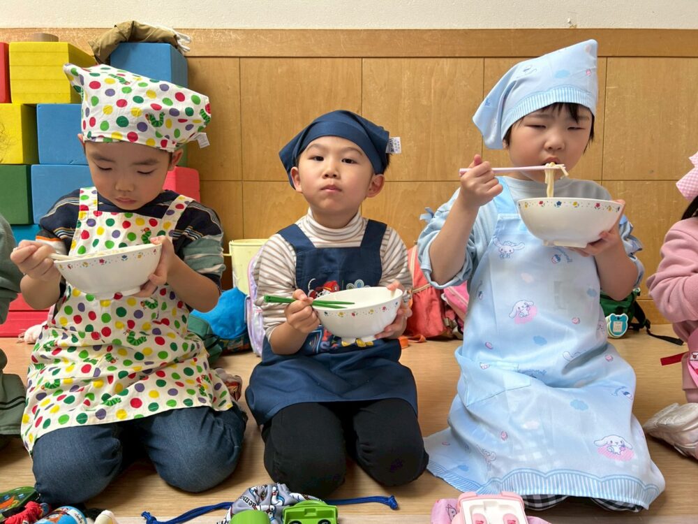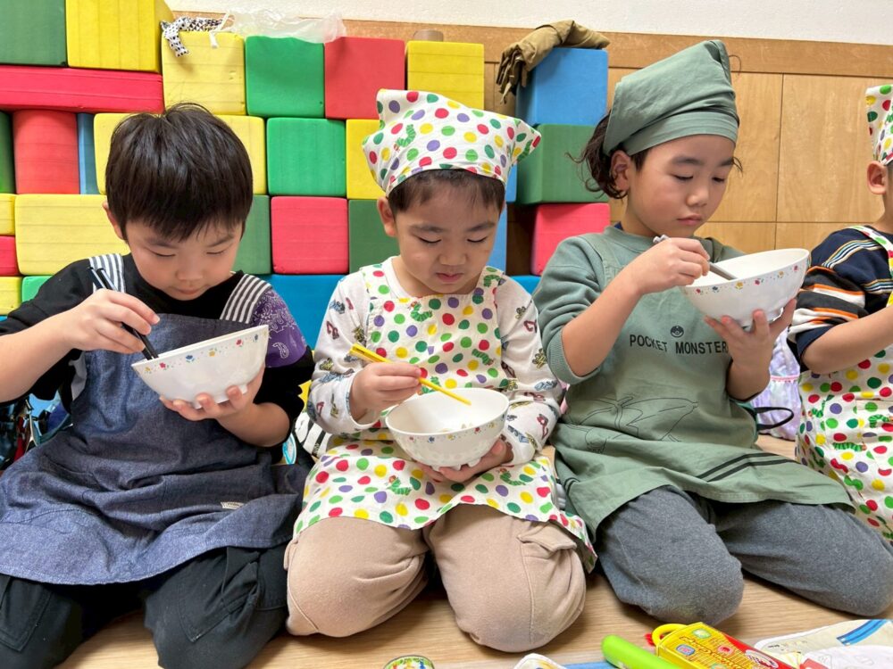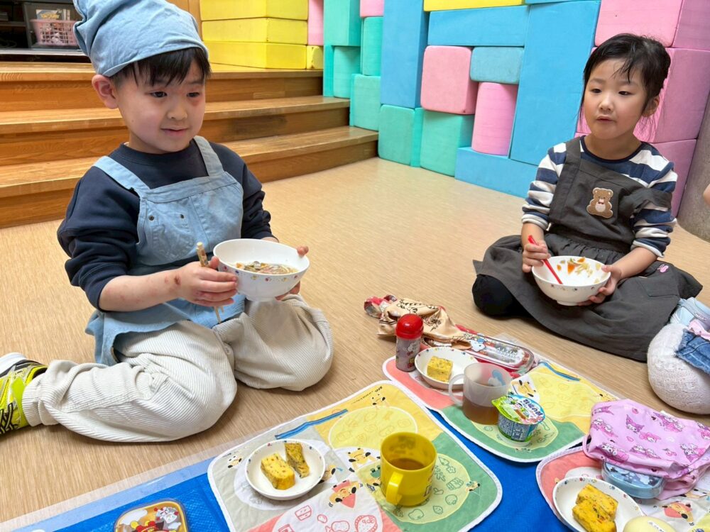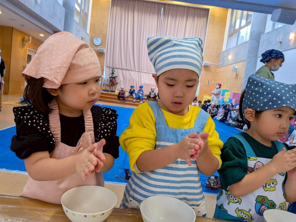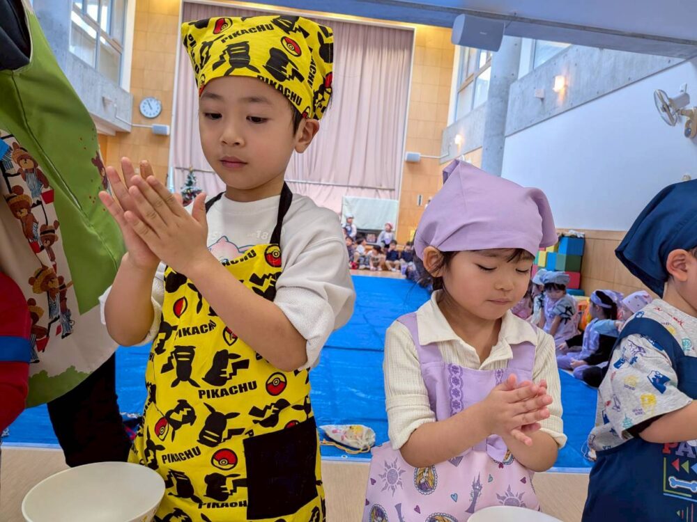 大きいお友だちはエプロンをつけて準備もバッチリ🌟