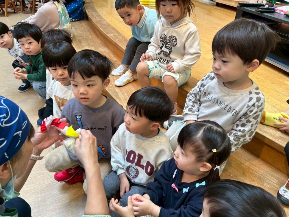 初めにおもちつきの紙芝居を見てから、おもちについての〇✖クイズを楽しみました✨